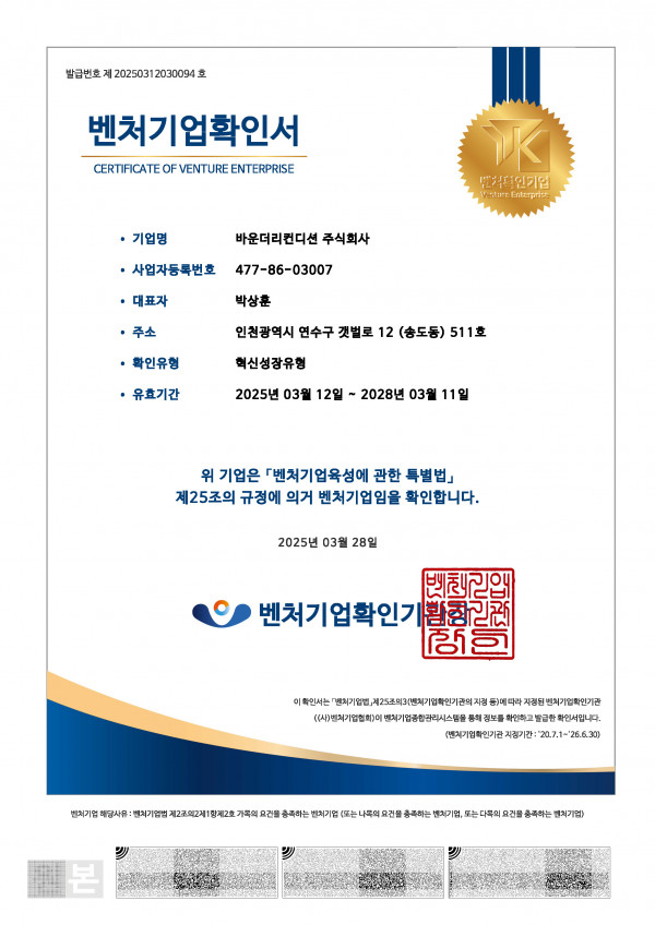 벤처기업확인서 페이지 정보 작성자 바컨 댓글 0건 조회 160회 작성일 25-12-05 11:21 본문 . 목록 이전글 기업부설연구소 인정서 댓글목록 댓글목록 등록된 댓글이 없습니다.